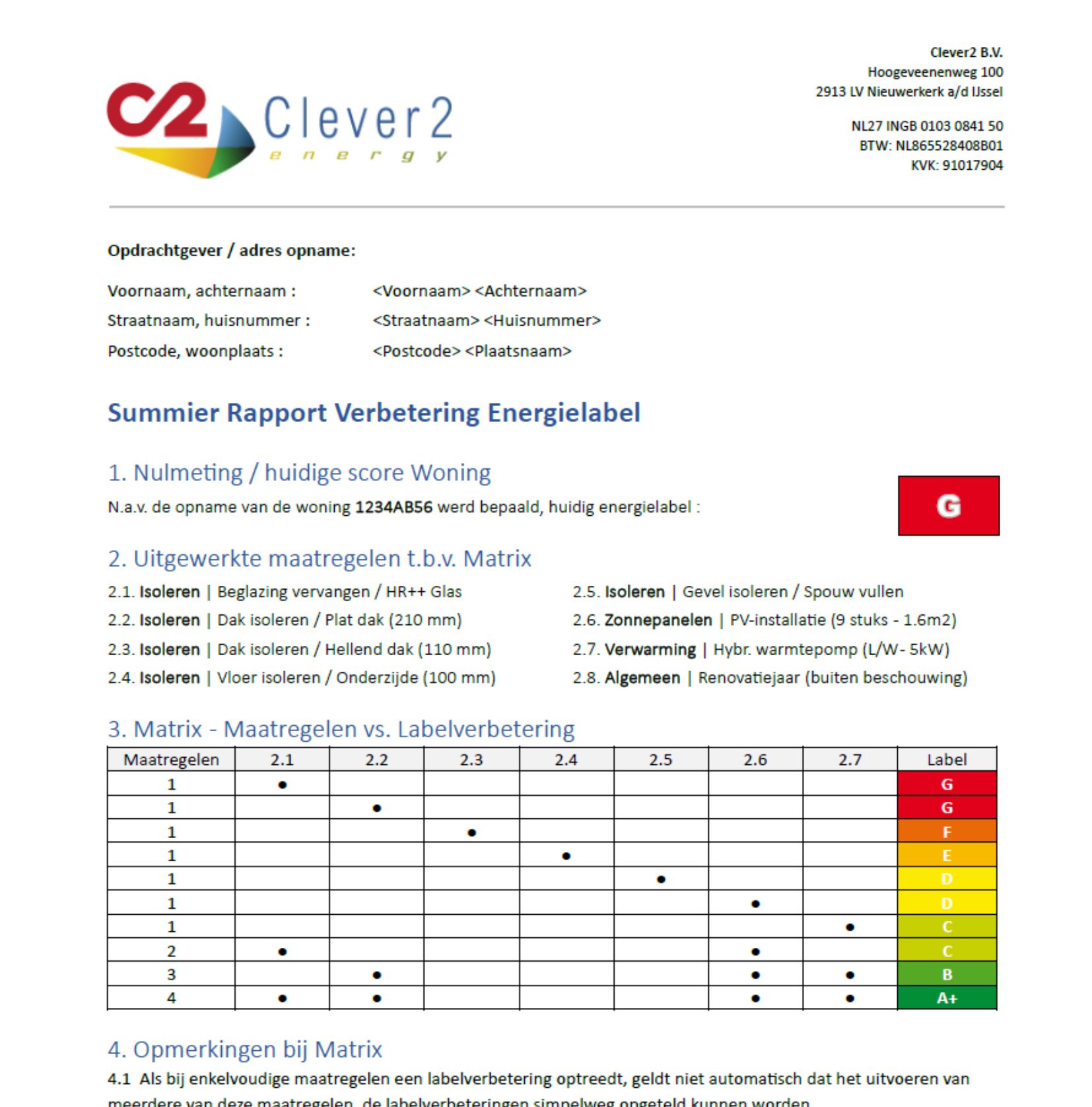 Ons Summier Rapport Verbetering Energielabel (SRVE) voorziet in zo’n overzicht, kost slechts €95 excl. BTW en is direct mee te bestellen.